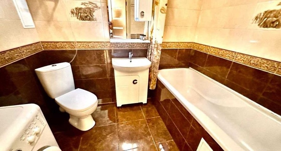 Квартира с отличным современным ремонтом, полностью укомплектована всей необходимой мебелью и техникой — всё входит в стоимость.