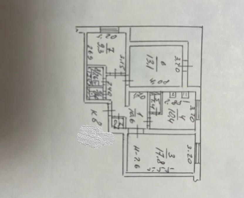 Общая площадь 72/40/12. 3 комнаты с раздельными входами, раздельный санузел.