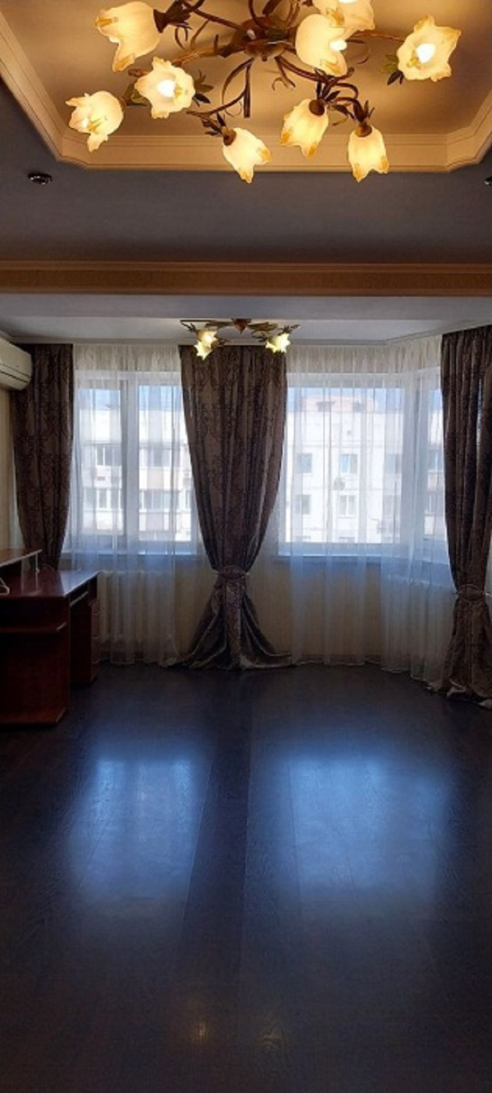 Просторная и очень уютная квартира, где всё продумано для комфорта. Комната удобно зонирована: зона отдыха и рабочее пространство. На полу — ламинат, на стенах — современные обои.