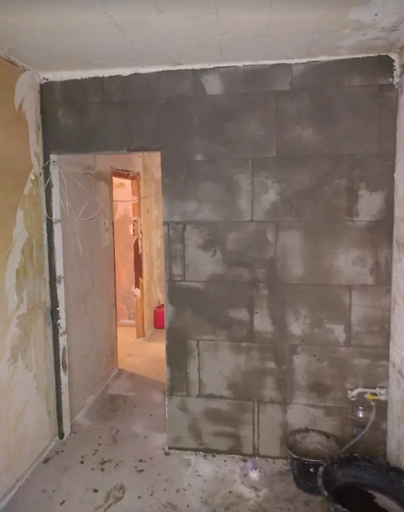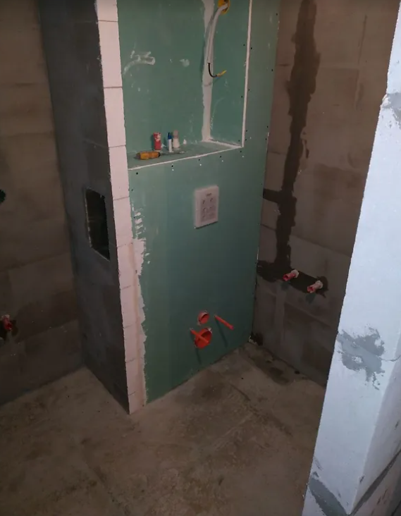 Санузел переделан, стоит две стены, инсталляция под унитаз, развод воды.