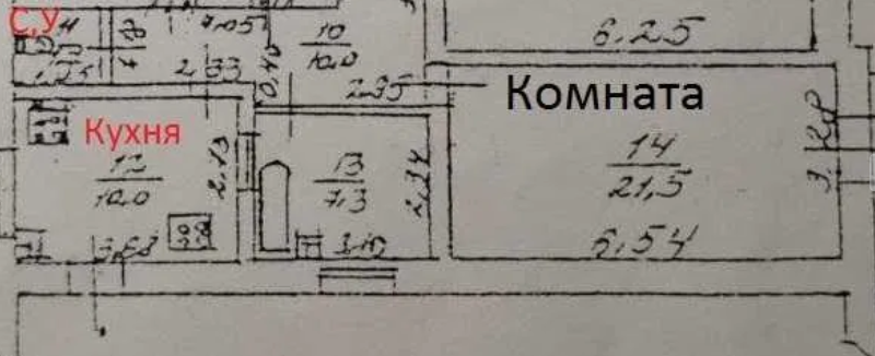 Комната 21,5 кв.м с балконом и высокими потолками 3,30 м.