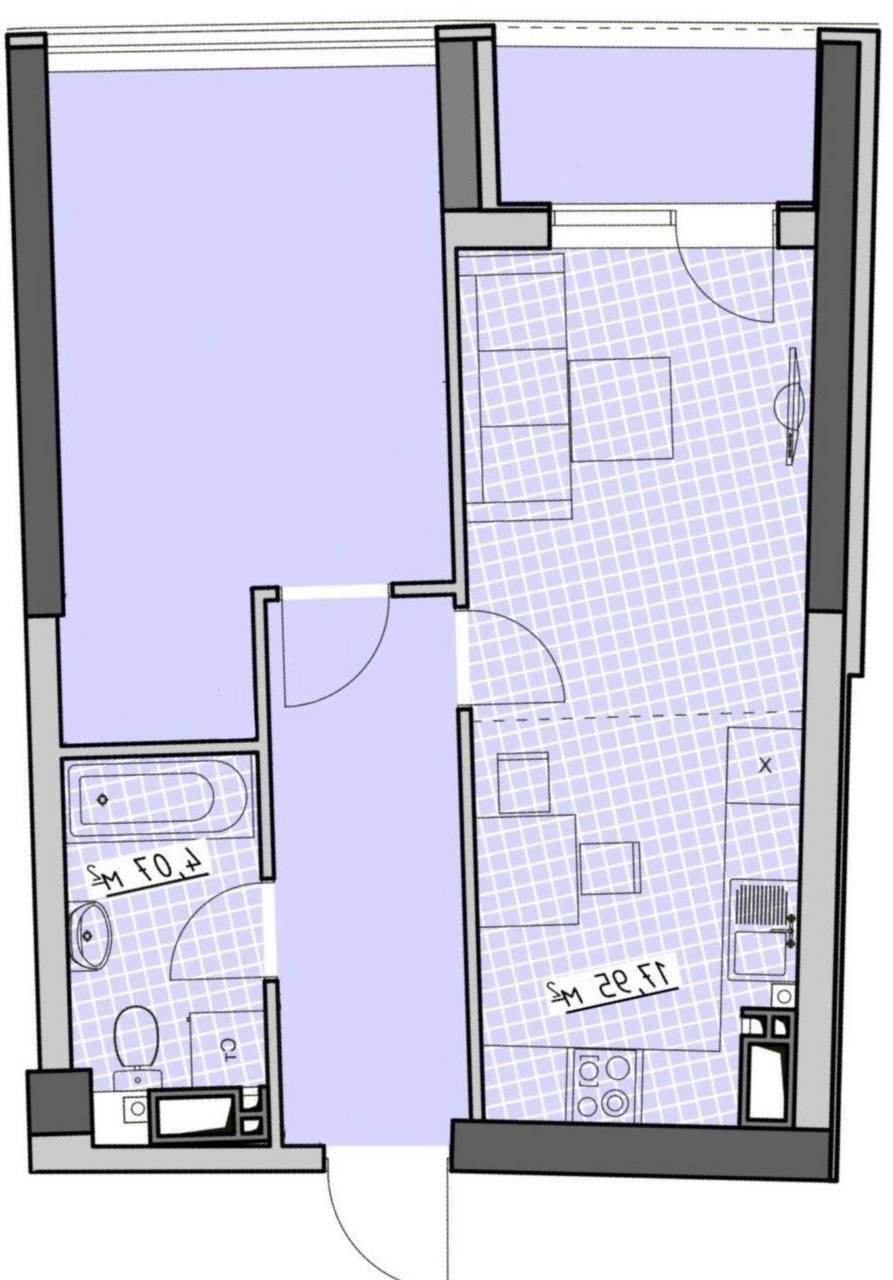 Евро-двухкомнатная квартира общей площадью 45 кв м