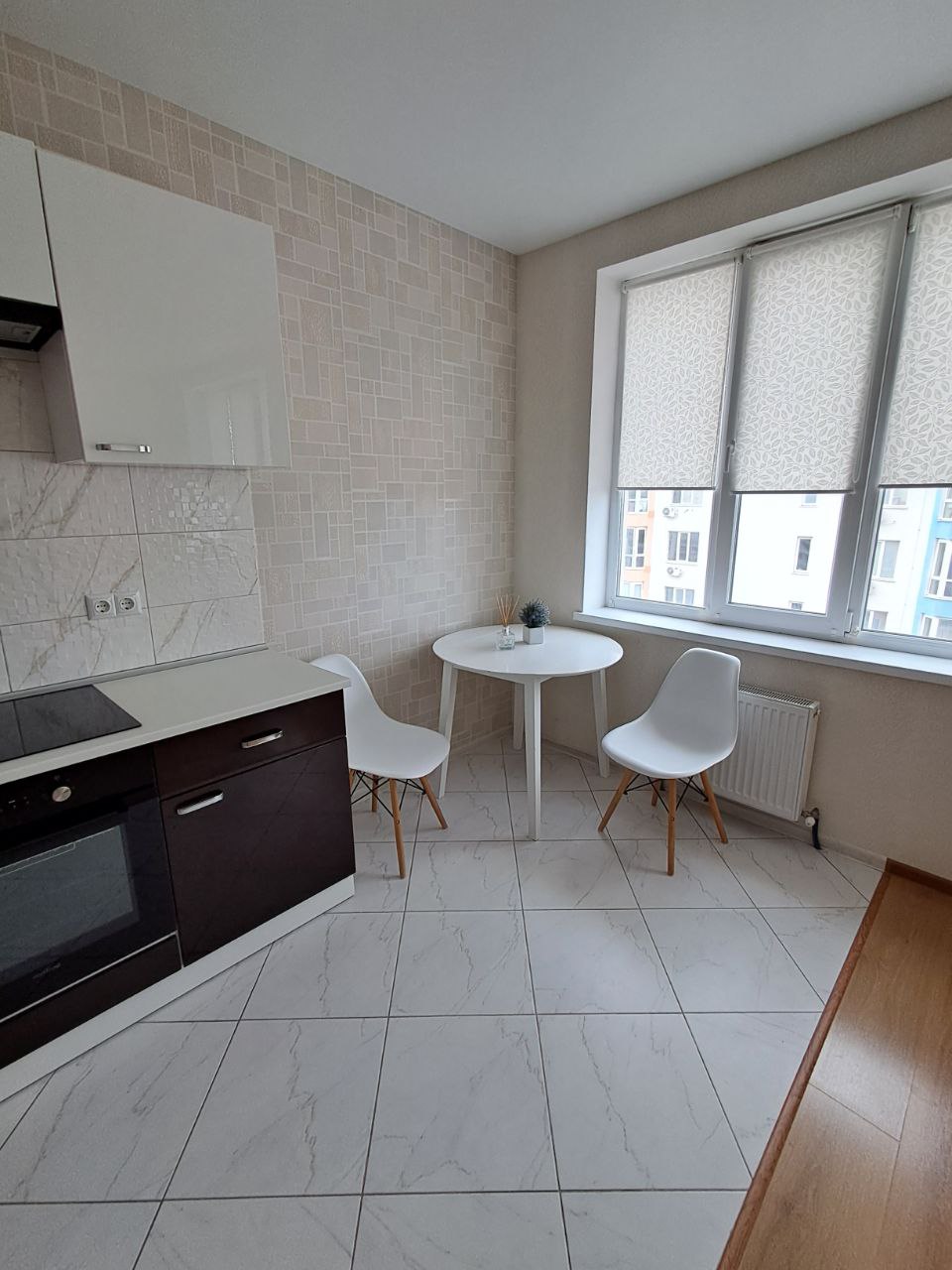 Площадь — 30 м². Просторная кухня-студия, большая ванная комната. Квартира тёплая, хорошая шумоизоляция.