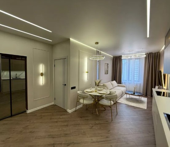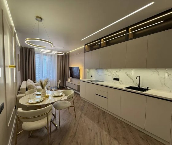 Стильная 2-х комнатная квартира с евроремонтом в новом ЖК Эллада. Две раздельные спальни с видом на море. Уютная кухня- гостиная. Вместительная гардеробная. Квартира полностью укомплектована мебелью и бытовой техникой.