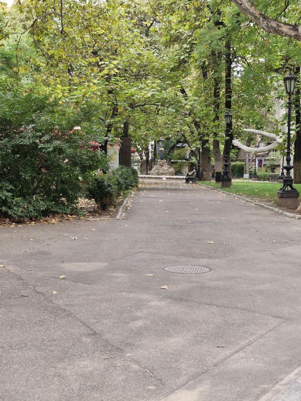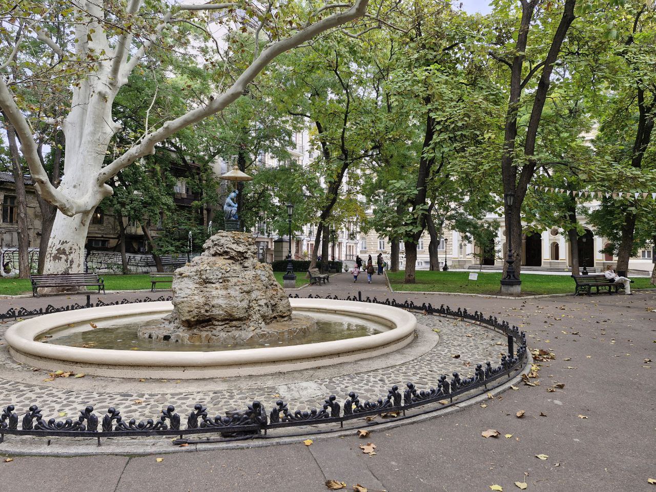 Тихий внутренний двор с парком и фонтаном, где можно отдыхать от ритма города.
