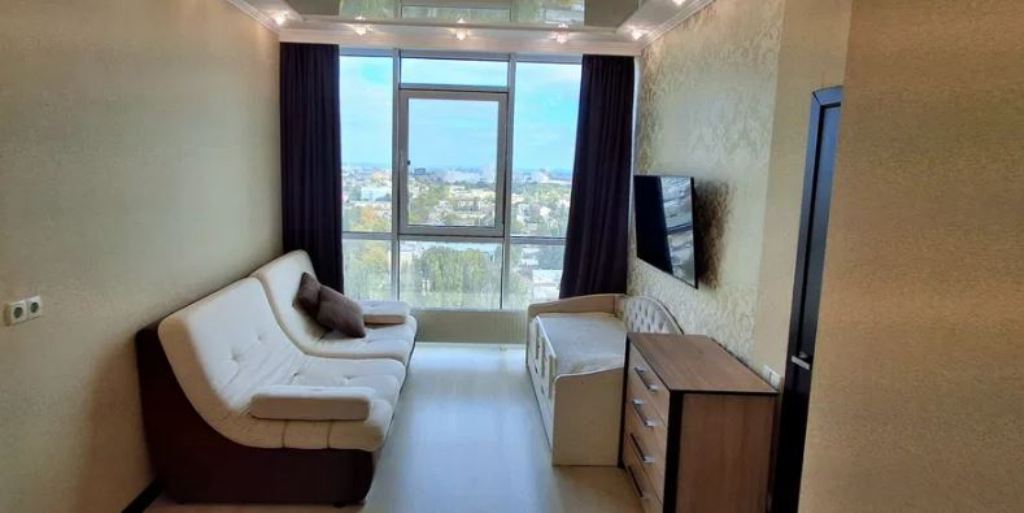 Изо всех окон квартиры открывается панорамный вид на весь город и море.