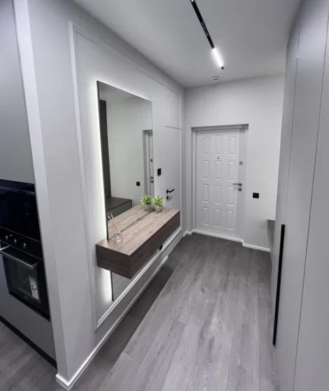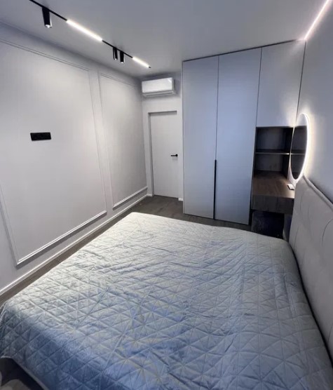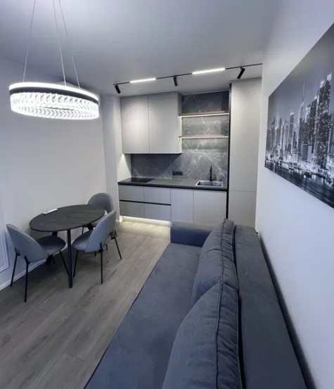 Уютная квартира с огромной кухней-гостиной. Из спальни выход на балкон с прекрасным видом на придомовую территорию. Квартира выполнена под покраску, двери скрытого монтажа, мебель - под заказ. Бытовая техника. Тёплый пол в санузле. Есть возможность подключения инвертора к системе