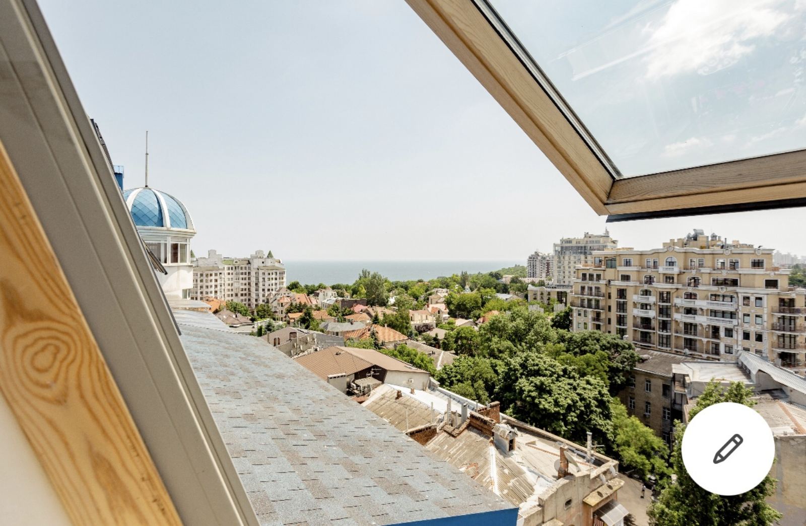 Вид из окна на Азарова-Французский, хорошо видно море(боковой вид моря слева).