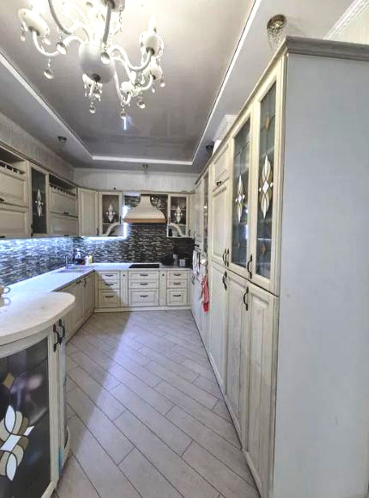 Большая гостиная, объединенная с кухней и две раздельные спальни, раздельный санузел, душевая кабина, красивый холл с гардеробной. Сделан капитальный ремонт, полностью оборудована мебелью и техникой в классической стиле, Стол в гостинной из натурального оникса, красивые винтажные кресла и диваны.