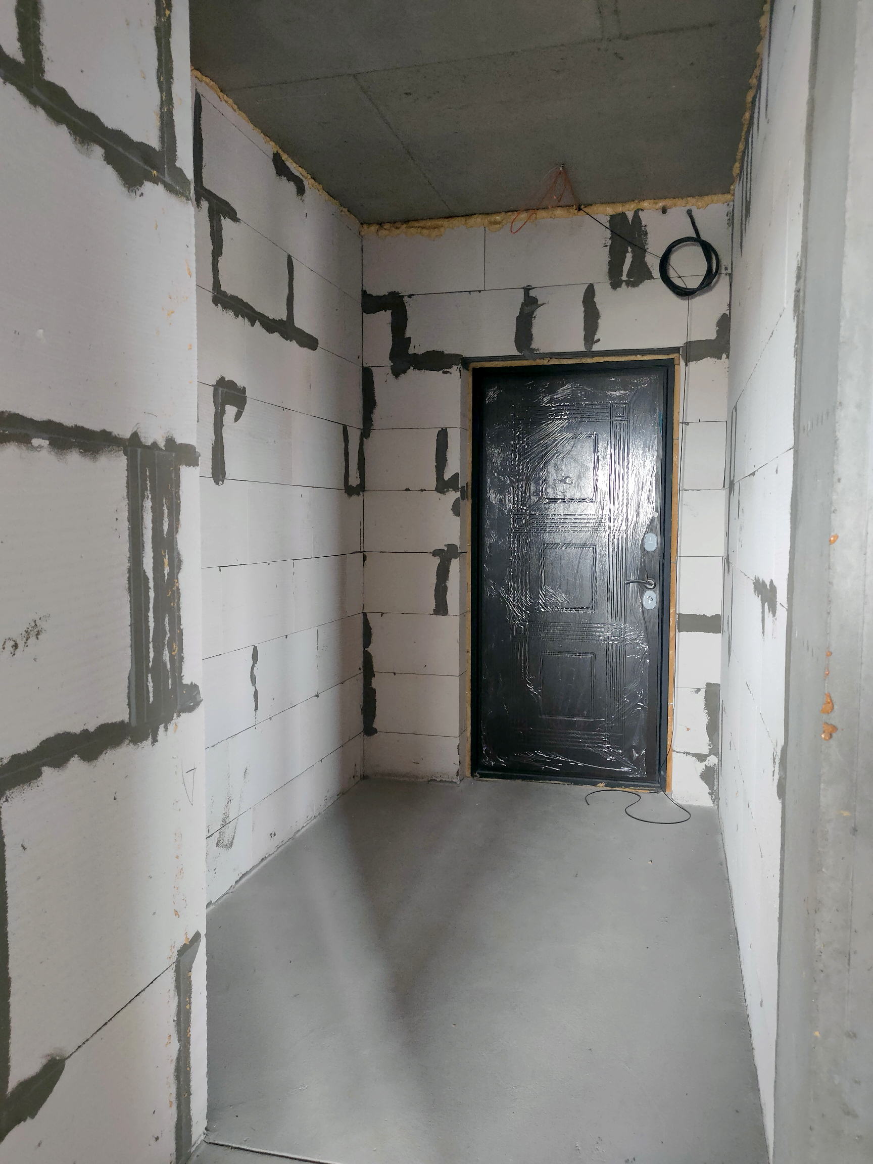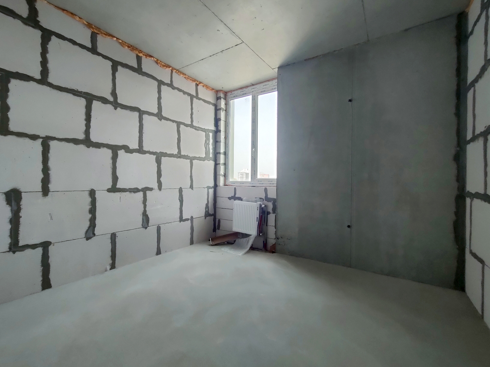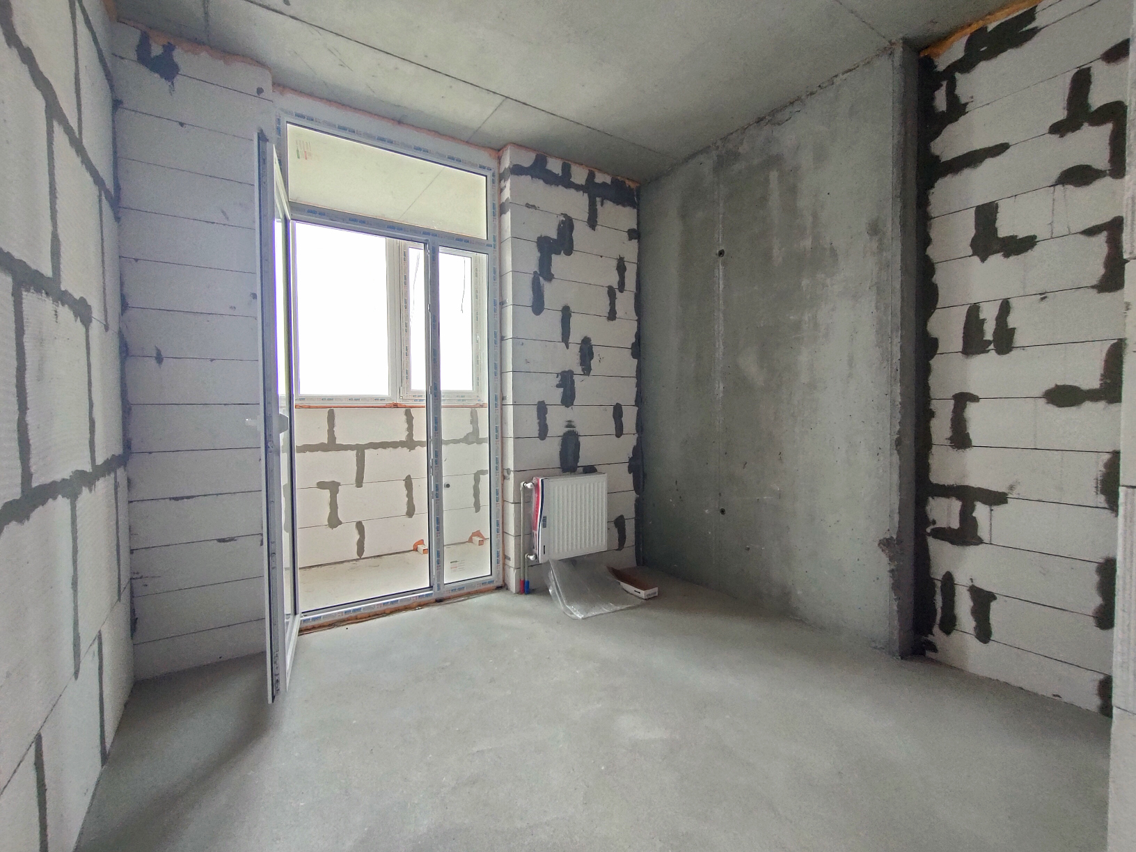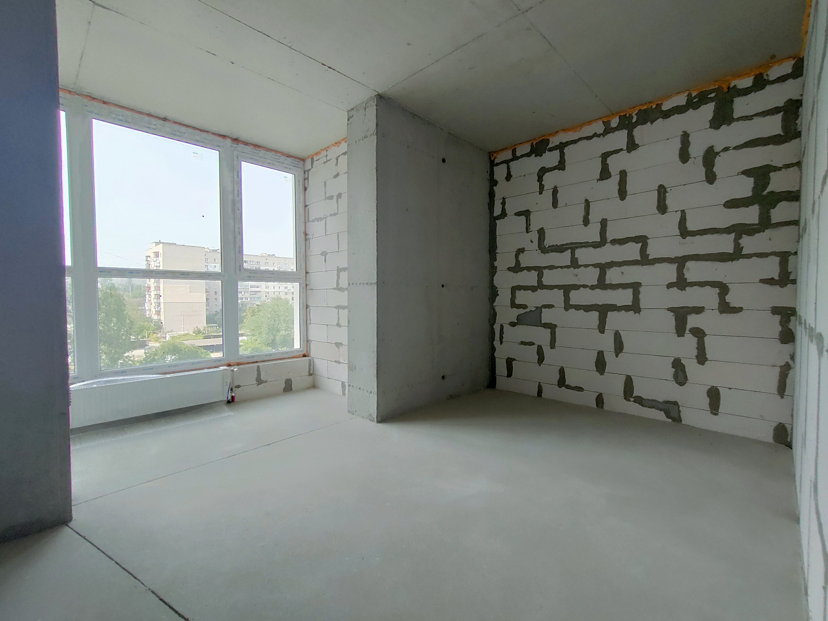 Состояние квартиры от строителей. На полу стяжка, стены не шпаклеваны. Установлены и подключены радиаторы отопления. В квартиру заведена электрика, сантехника, пожарная сигнализация, интернет. Лоджия застеклена. Установлено крепление для наружного блока кондиционера.