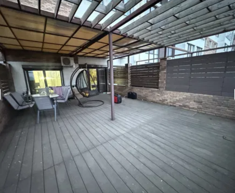 Терраса 25 кв.м., накрыта и выложена плиткой. На террасе остается стекляный стол и 6 стульев.