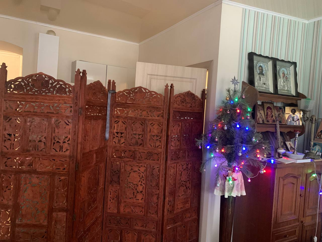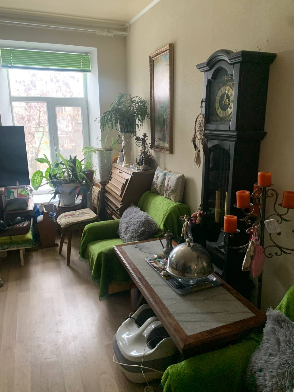 Расположена на втором этаже трёхэтажного крепкого дома. Стены широкие. Потолки 3.7 м.