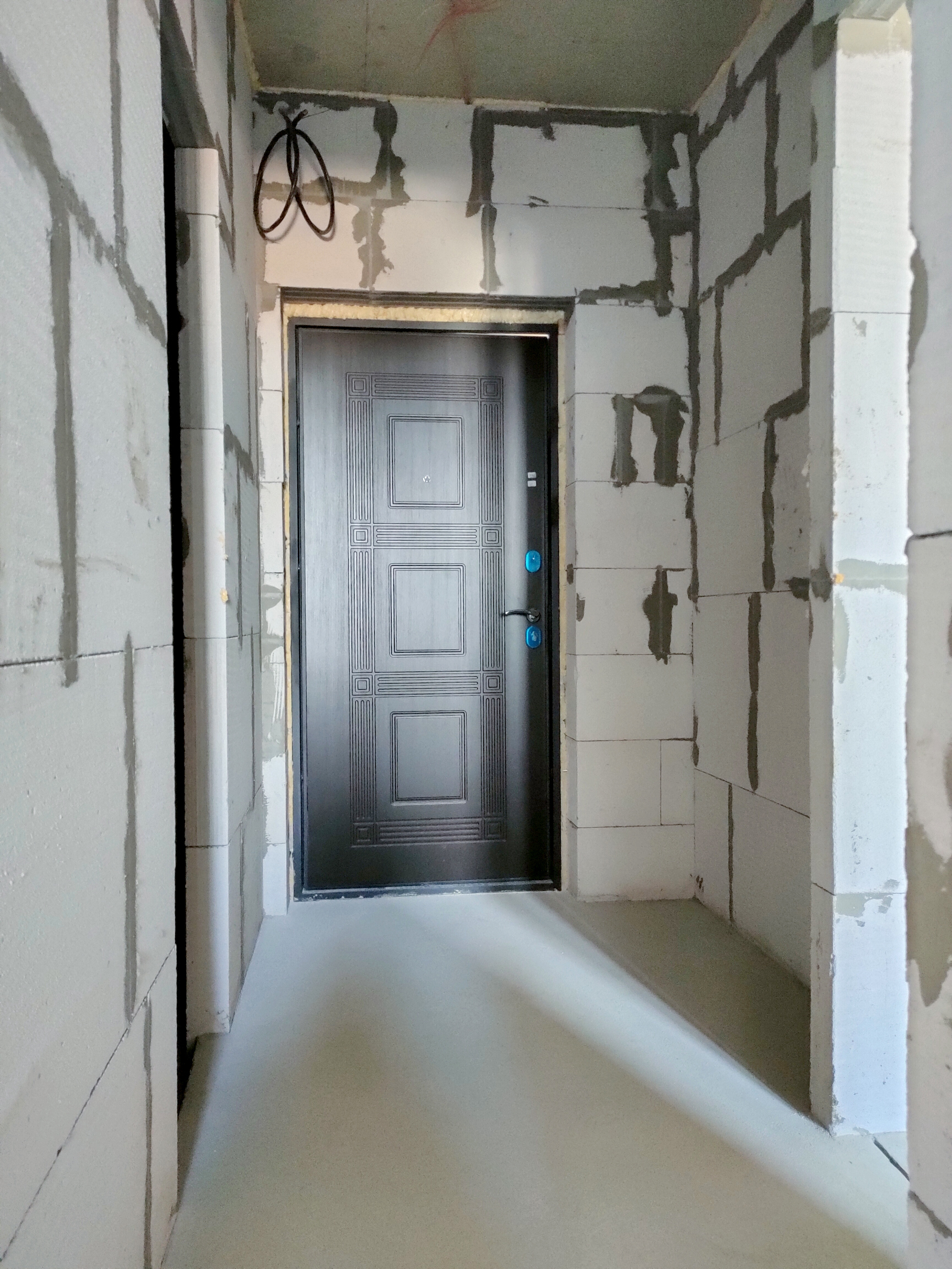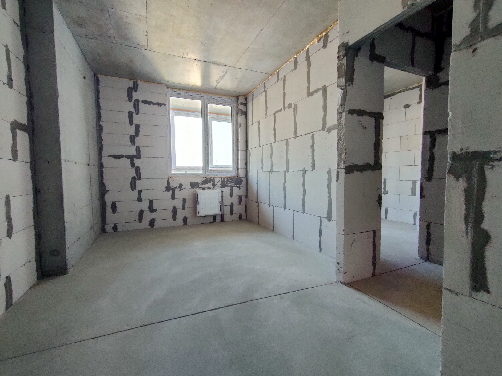 Состояние квартиры от строителей. На полу стяжка, стены не шпаклеваны. Установлены и подключены радиаторы отопления. В квартиру заведена электрика, сантехника, пожарная сигнализация, интернет. Лоджия застеклена. Установлено крепление для наружного блока кондиционера.