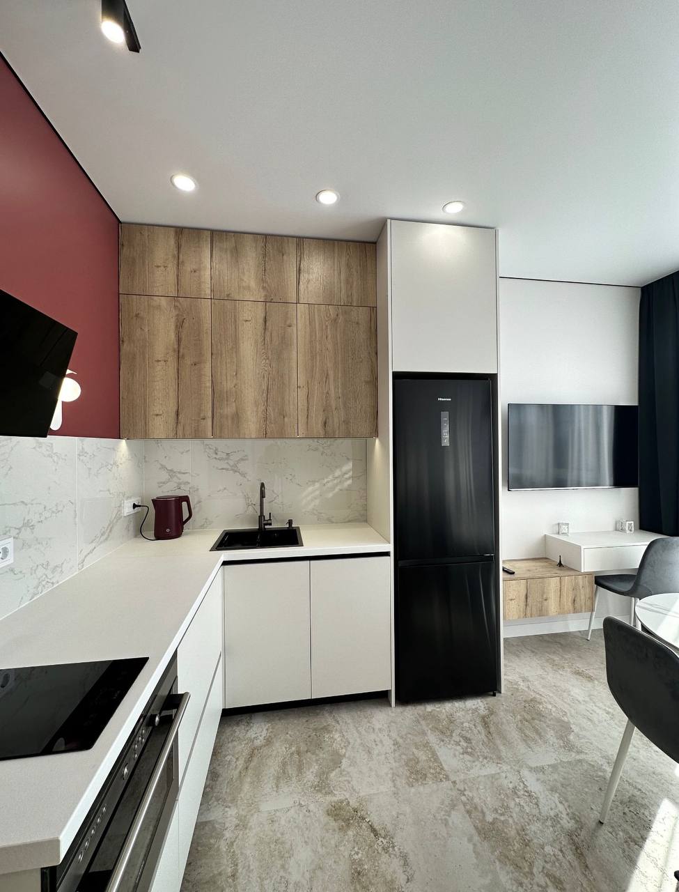 Квартира полностью укомплектована всей необходимой мебелью и техникой.