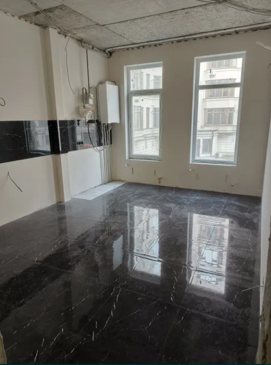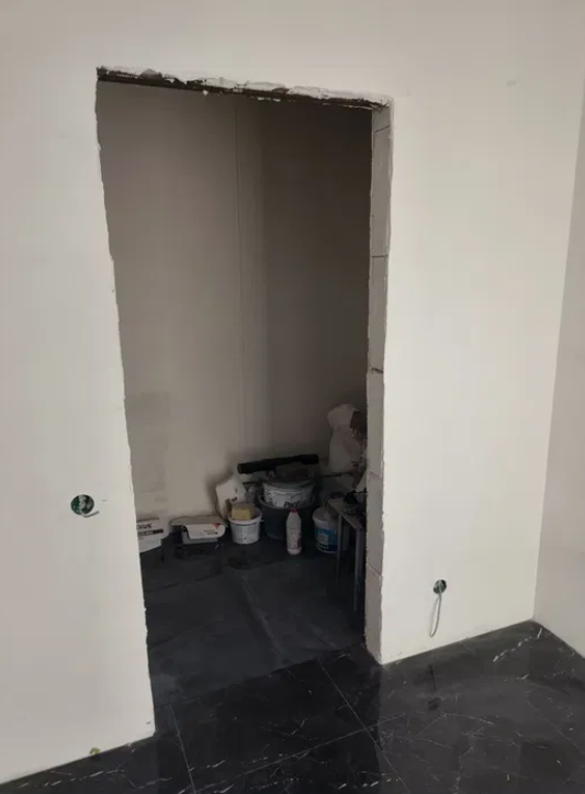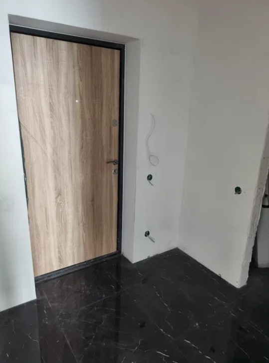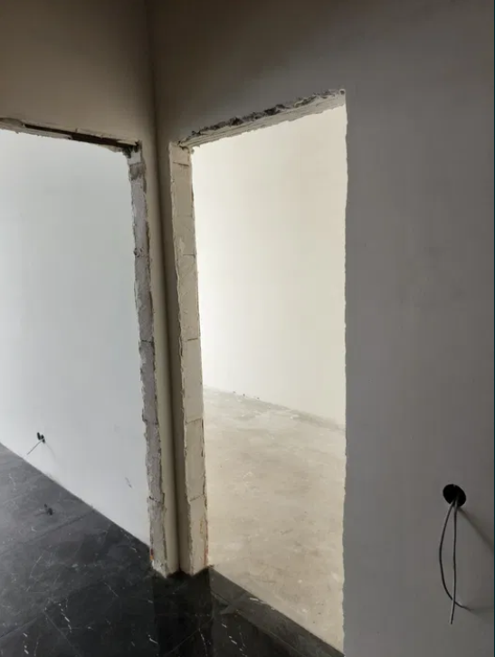 стены оштукатурены и отшпаклёваны, выведены трассы под кондиционеры.