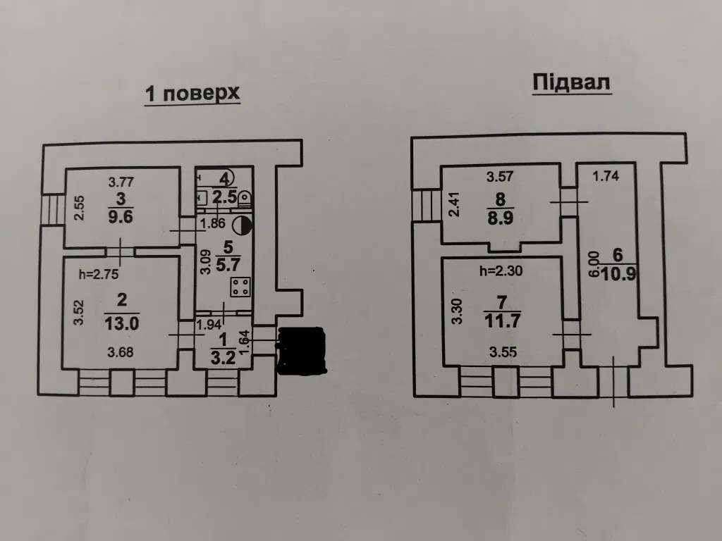 Объект без мебели и ремонта! общ.66 метров,в два уровня