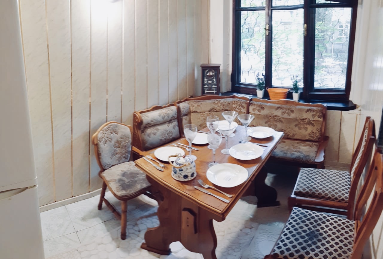 Квартира в жилом состоянии бойлер, паркет. В квартире бытовая техника: кондиционер стиральная машина, очиститель воды. Одна комната выходит на фасад дома, остальные во двор, в квартире есть встроенная мебель (5-метровый зеркальный шкаф в холле). Высота потолка 3 метра, удобное расположение дома -рядом много магазинов, школы, детские сады, базар, транспорт. Охранная сигнализация. Отличный тихий двор.