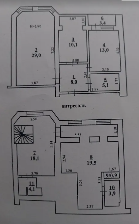 Первый уровень: гостиная -29 кв.м. спальня с балконом -16 кв.м., кухня -15 кв.м. с мебелью и техникой, санузел.