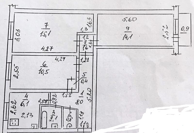 Общая площадь 60 кв.м.3 раздельные комнаты.