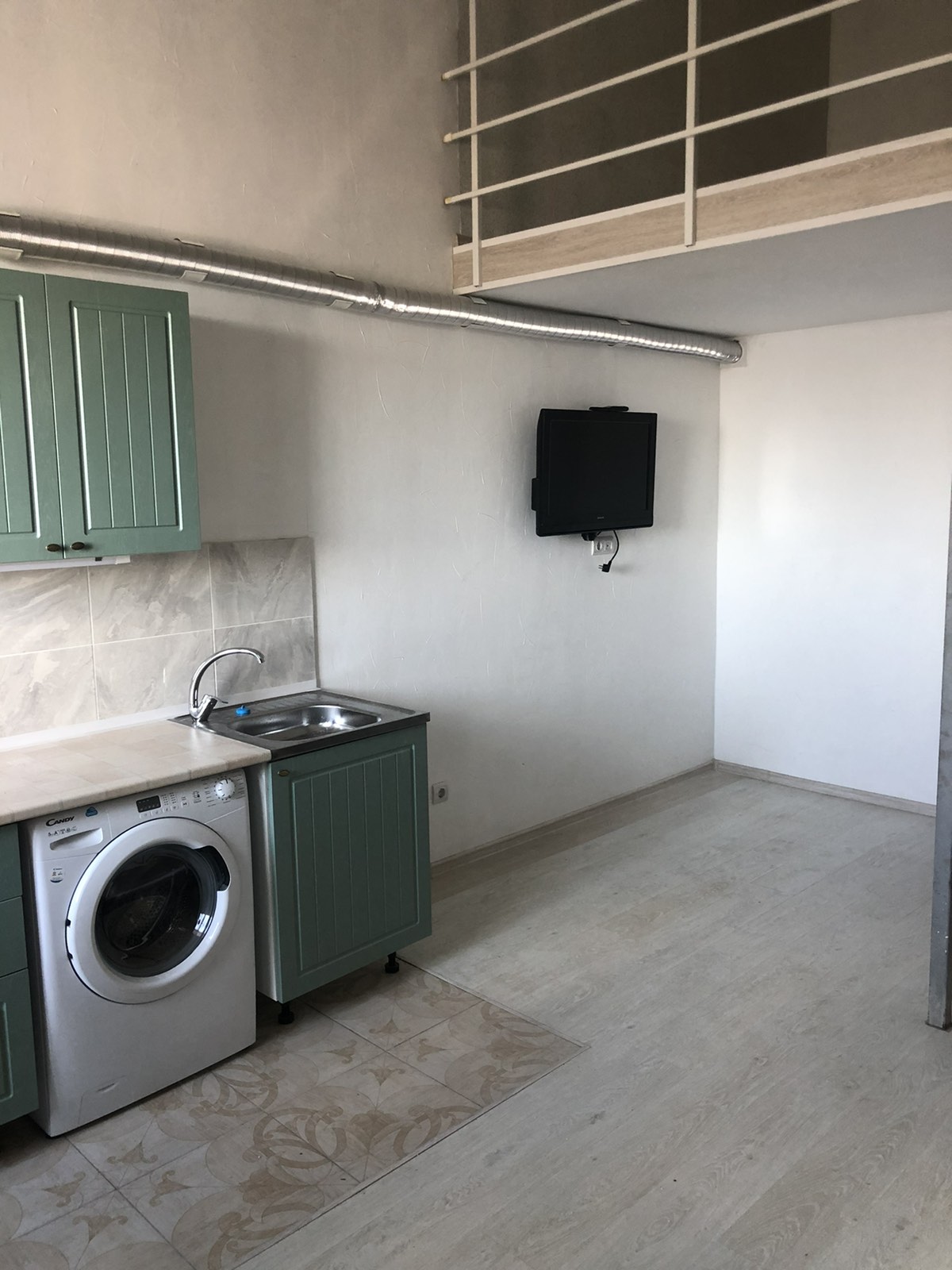 На первом этаже -кухня-студия,гардеробная,санузел